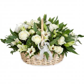 Завораживающая корзинка с нежной белой альстромерией. Чувственный подарок любимому человеку.