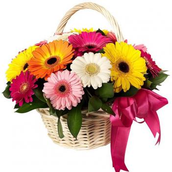 Яркая подарочная корзинка. Прекрасный подарок для мамы, подруги или любимой девушки. Если чей-то день начнется с такого яркого букета, день этот будет волшебный!